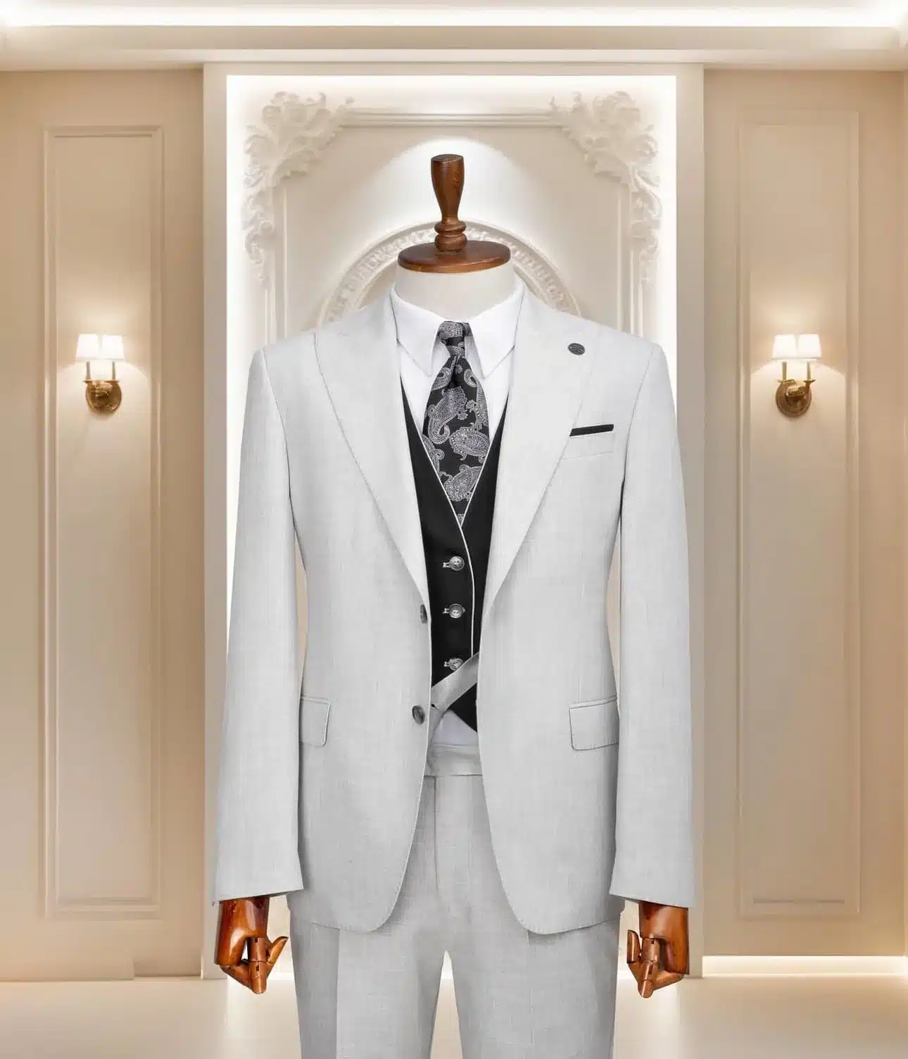 Met meer dan 10.000 stoffen en exclusieve nieuwe collecties in de winkel, bieden wij confectie trouwpakken die op maat worden aangepast voor de perfecte pasvorm. Of u nu op zoek bent naar een klassiek, modern of vintage trouwpak, wij zorgen ervoor dat het perfect bij u past.